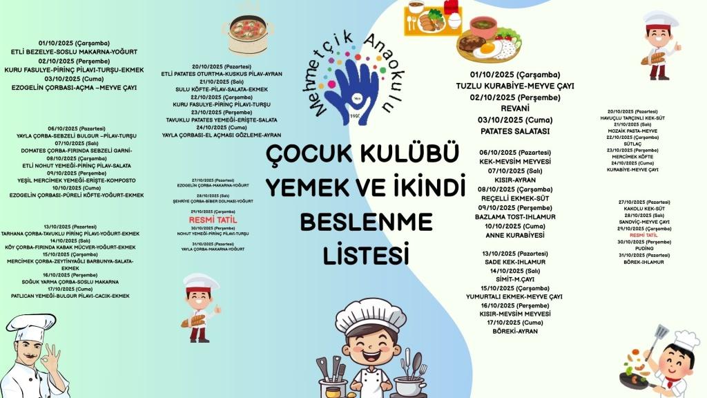 EKİM 2025 ÇOCUK KULÜBÜ YEMEK LİSTESİ